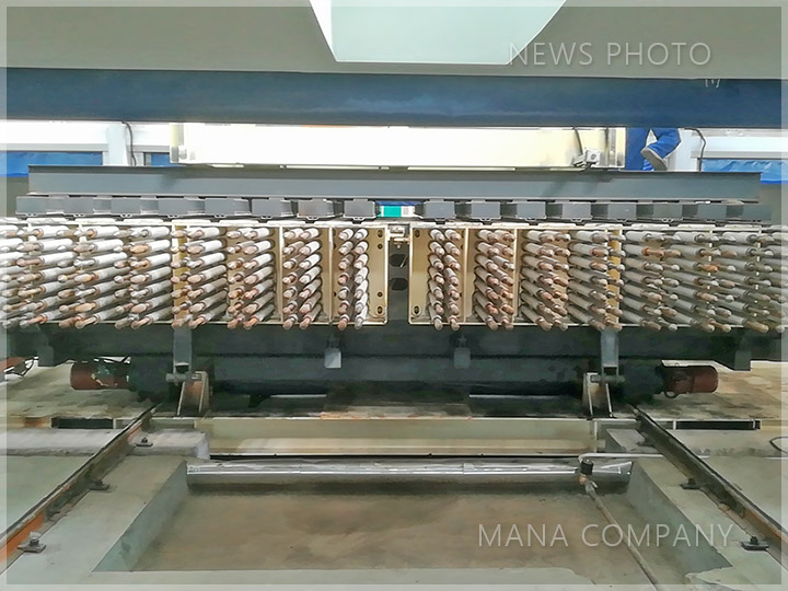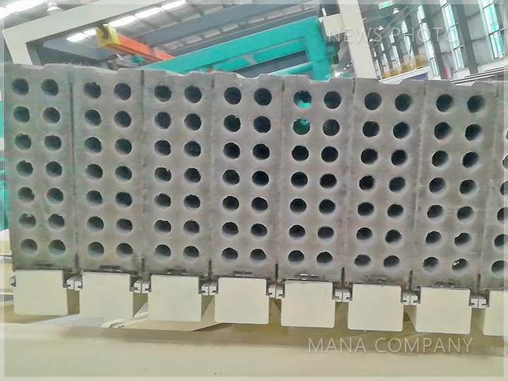 客戶現(xiàn)場-發(fā)泡水泥墻板生產(chǎn)線-注漿完成的成組立模成型機(jī)