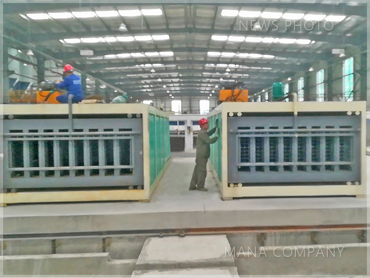 客戶現(xiàn)場-發(fā)泡水泥墻板生產(chǎn)線-成組立模成型主機(jī)