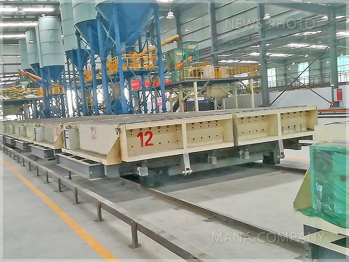 客戶現(xiàn)場-100板 24塊/模-發(fā)泡水泥墻板生產(chǎn)線-成組立模成型主機組&注料平臺