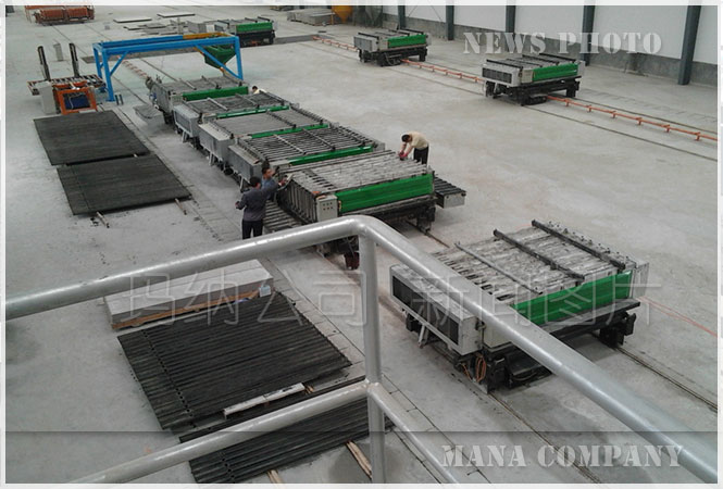5) 養(yǎng)護(hù)完成后,模具行走至出板機(jī)構(gòu)工位,開模,再由出板機(jī)把墻板推出,以供打包。